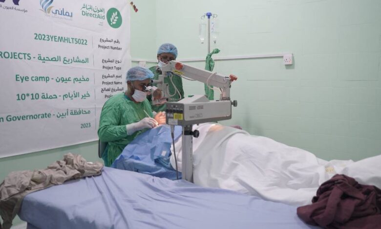 العون المباشر تدشن مخيما لإجراء ٥١٩ عملية للمياه البيضاء في أبين