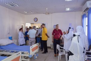 وفي السياق, طاف الدكتور الداعري ومعه عدد من الأطباء الاستشاريين، على أقسام المستشفى حيث اطلع على التجهيزات التي تجري بوتيرة عالية بقسم القلب والكلى والعمليات والعناية المركزة، وابدوا ارتياحهم لمستوى الترميمات والتحسينات التي أضيفت إلى هذا الصرح الطبي .