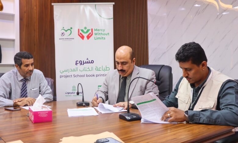 وقع بمكتب وزارة التربية والتعليم بساحل حضرموت على اتفاقية مشروع طباعة الكتاب المدرسي لتربية مديرية مدينة المكلا بتمويل منظمة رحمة حول العالم .