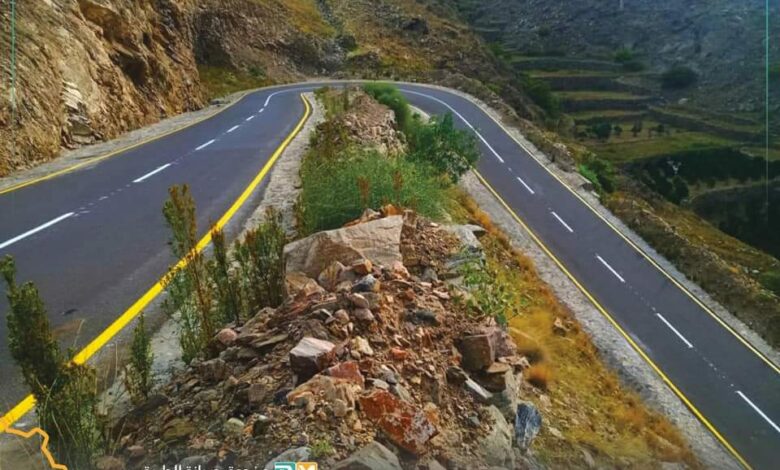 شاهد.. الأنتهاء من أعمال الطلاء لمشروع طريق ذي ناخب لبعوس في يافع
