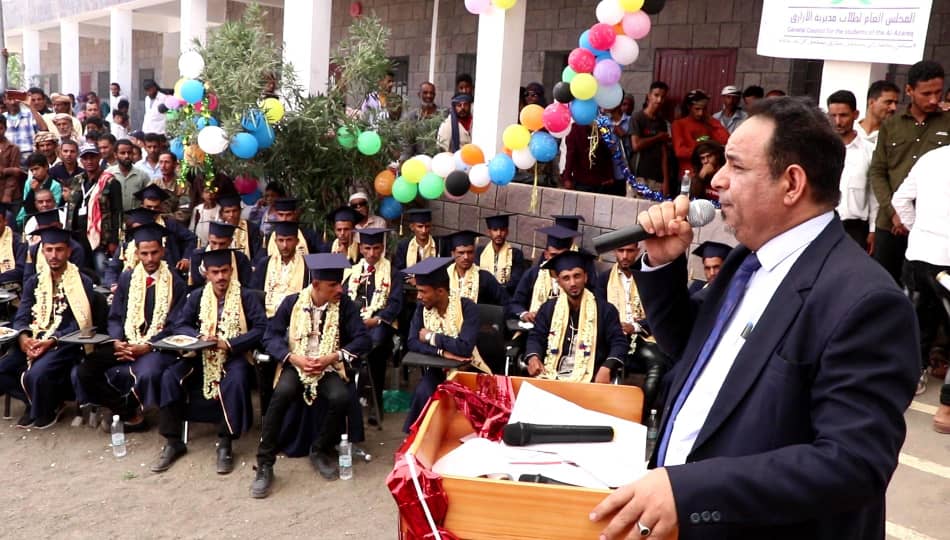 وشهد حفل التخرج الذي أقيم بدعم من رجل الأعمال أحمد عوض السنيدي، وحضرته قيادات وشخصيات سياسية وأكاديمية واجتماعية عدة تقدمهم رئيس المجلس الانتقالي الجنوبي بمحافظة الضالع العميد عبدالله مهدي سعيد ، ونائبه الاستاذ قاسم صالح ناجي.