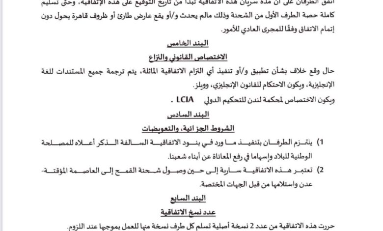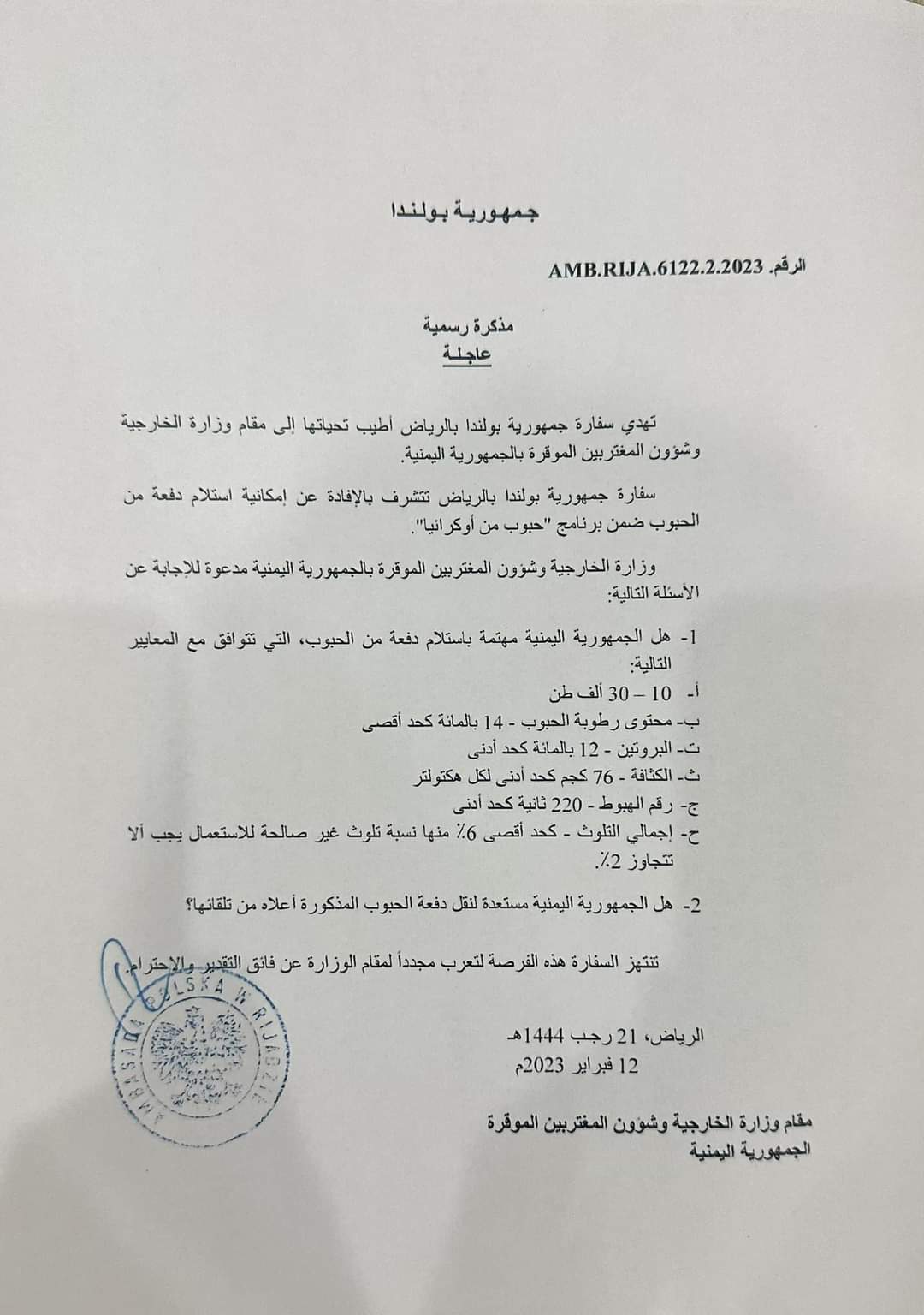 تابعت وزارة التخطيط والتعاون الدولي ما تناولته بعض المواقع الالكترونية وللاسف بعض الصحف والقنوات الفضائية حول موضوع شحنه القمح (البولندي الاوكراني ) وللإفادة والتوضيح تؤكد وزارة التخطيط والتعاون الدولي انه تم إبلاغها والتوجيه لها من دولة الرئيس الوزراء د.معين عبدالملك وذلك في يوم ١١ سبتمبر ٢٠٢٣م، بعد ان رفض دولة الرئيس اعتماد العقد المبرم بين وزارة الصناعة والتجارة وشركة خاصة تسمى (شركة الغداء الماسي) والتي كانت ستأخذ ما نسبته ٥٠٪ من اجمالي كمية الشحنة حيث وقد فوضت وزارة التجارة والصناعة سفيرة اليمن لدى وارسو بتوقيع الاتفاق مع المستفيد وشحن الشحنة من صوامع غلال ميناء GDANSK البولندي وكان اخر يوم مسموح لنقل الشحنة هو ١٥ سبتمبر ٢٠٢٣م كما علمت الوزارة بالأمر حينها من المعنيين حيث وقد ظل الامر في قنوات وزارتي التجارة والصناعة والخارجية عبر سفارتنا ببولندا، ولأن وزارة التخطيط والتعاون الدولي معنية بالمنح والمساعدات وكان المفترض ان تمر هذه القضية وغيرها عبرها وبحيث ستجد القنوات المناسبة كما يصل يومياً الغذاء لملايين اليمنيين في كل المحافظات حيث قامت بمخاطبة برنامج الغذاء العالمي والذي اعتذر ووضح باعتذاره عن عدم قدرته على تحمل نفقات نقل وتغليف وتوزيع الشحنة الى المستفيدين بكل محافظات اليمن وهو مبلغ كبير لم يستطيع البرنامح توفيره نظراً لانخفاض التمويلات بشكل عام.