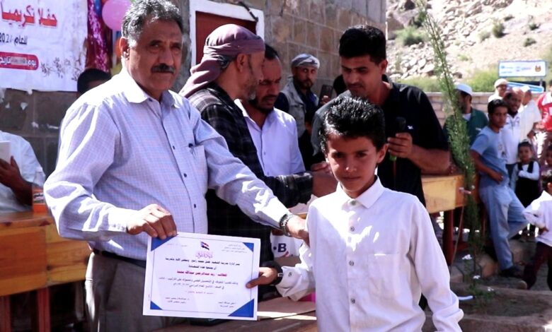 بالصور…إدارة المرأة والطفل بإنتقالي محافظة الضالع تكرم الطلاب الأوائل بمدرسة ذخار