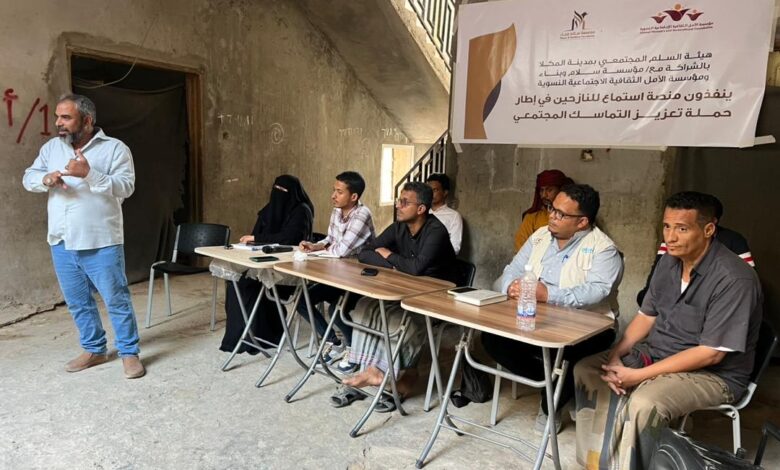 هيئة السلم المجتمعي بمدينة المكلا ومؤسستي الأمل وسلام وبناء ينظمان جلسة استماع للنازحين
