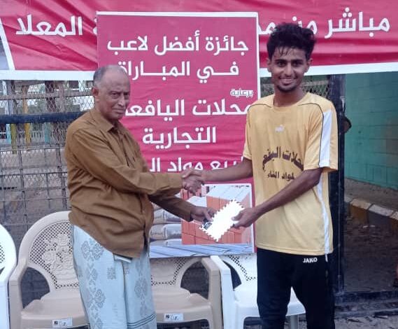 أفضل لاعب في المباراة نالها لاعب الرئيسي ( محمد خرابه ) وتسلمها من الكابتن خالد هويدي لاعب نادي شمسان سابقاً