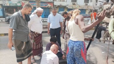 فرق الصيانة بمؤسسة مياه عدن تنفذ أعمال تصفية وفتح انسدادات في شبكات الصرف الصحي بالمعلا