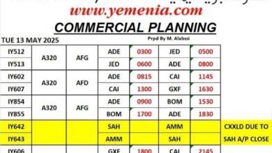 رحلات الخطوط الجوية اليمنية يوم غد الثلاثاء13مايو2015