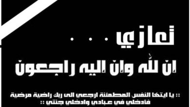 أكتوبر 30, 2021 عدد المشاهدات 479 عدد التعليقات 0 عزاء ومواساة لآل بابقي بسم الله الرحمن الرحيم “يَا أَيَّتُهَا النَّفْسُ…