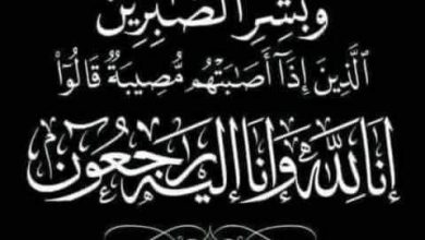 بسم الله الرحمن الرحيم *_(وَبَشِّرِ الصَّابِرِينَ الَّذِينَ إِذَا أَصَابَتْهُم مُّصِيبَةٌ قَالُواْ إِنَّا لِلّهِ وَإِنَّا إِلَيْهِ رَاجِعونَ)_* صدق الله العظيم.بعث رئيس…